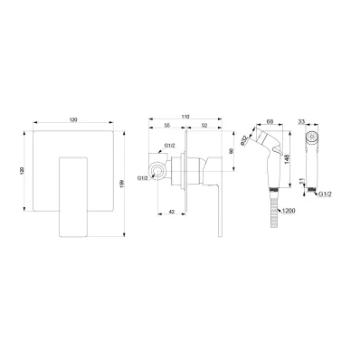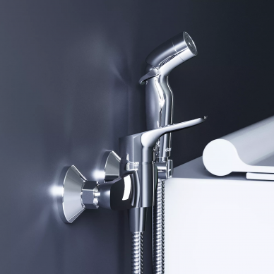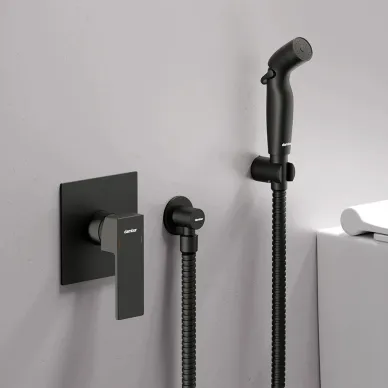 - Комплектация: смеситель, термостат, шланг, держатель, лейка
