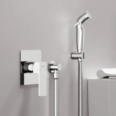 - Комплектация: смеситель, шланг, держатель, лейка, крючок, полочка