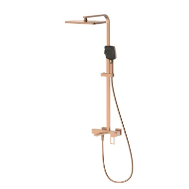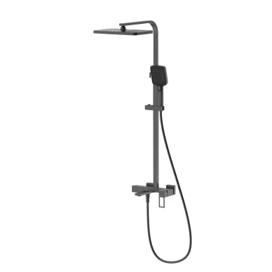 - Комплектация: смеситель, шланг, держатель, лейка, стойка, верхний душ