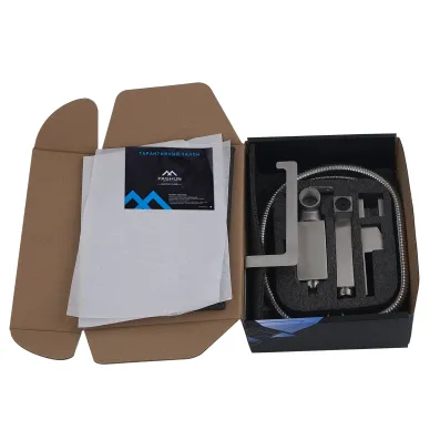 - Комплектация: смеситель, шланг, держатель, лейка, полочка