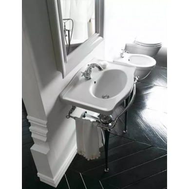 Раковина в классическом ретро стиле Galassia Ethos 8434. Цена указана за раковину. Дополнительно: пьедестал, полотенцедержатель, решетка, консоль состаренный металл с полочкой и полотенцесушителем, ножки состаренный металл, ножки в комплекте с полотенцесушителем, ножки керамика. Размер: 950х540 мм.