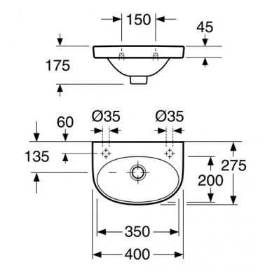 Раковина Gustavsberg Logic 5393 с отверстием под смеситель слева. Размер: 360х290 мм.