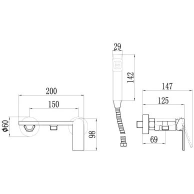 - Типы струи: две, ручной душ, налив ванны