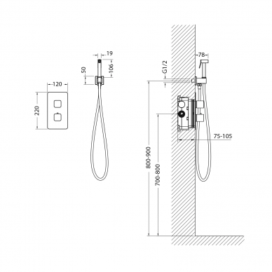 - Комплектация: термостат, шланг, держатель, лейка
