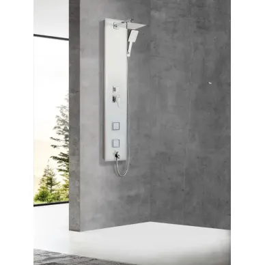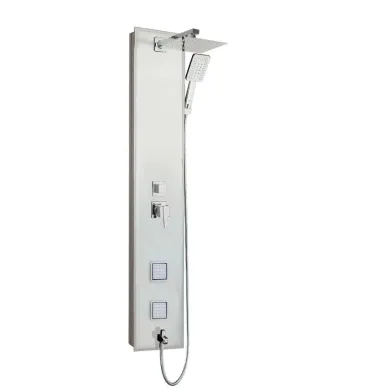 - Комплектация: верхний душ, стойка, лейка, держатель, шланг, кронштейн, смеситель, излив