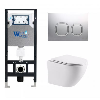 Инсталляция Welt Wasser MARBERG 410 + MERZBACH 043 GL-WT + MAR 410 SE CR в комплекте с унитазом, безободковый, с сидением микролифт