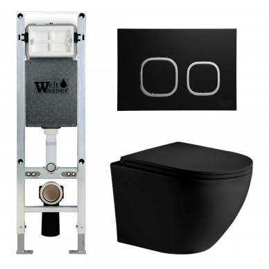 Инсталляция Welt Wasser AMBERG 497 ST + MERZBACH 043 MT-BL + AMBERG RD-MT CR в комплекте с унитазом, безободковый, с сидением микролифт