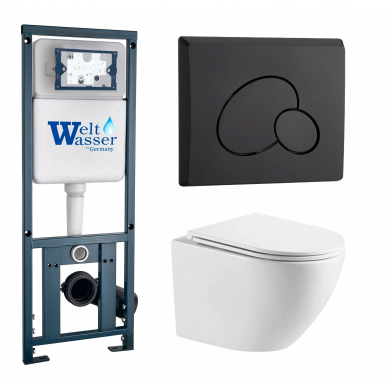 Инсталляция Welt Wasser MARBERG 507 + MERZBACH 043 GL-WT + MAR 507 RD MT-BL в комплекте с унитазом, безободковый, с сидением микролифт