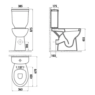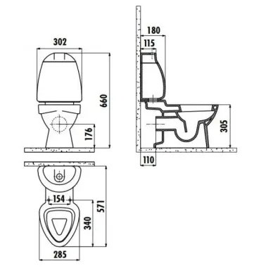 - Тип: напольный (унитаз-компакт), напольный (высокий бачок)