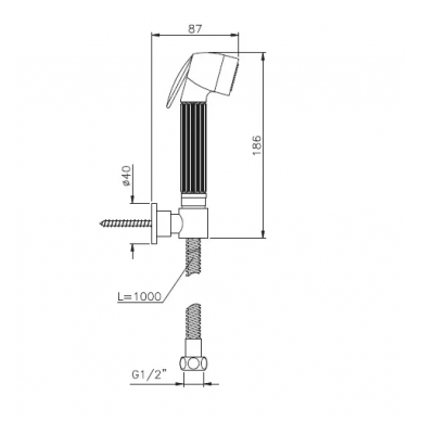 - Комплектация: без смесителя, шланг, держатель, лейка