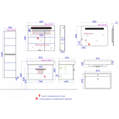 Мебель для ванной 80-90 см
