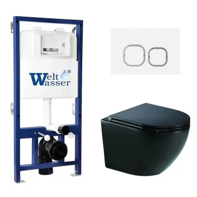 Инсталляция Welt Wasser AMBERG 497 ST + MERZBACH 043 XL MT-BL + AMBERG RD-WT в комплекте с унитазом, безободковый, с сидением микролифт