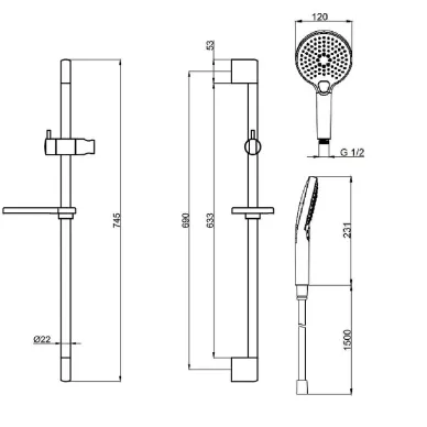 - Комплектация: термостат, кронштейн, шланг, держатель, лейка, верхний душ