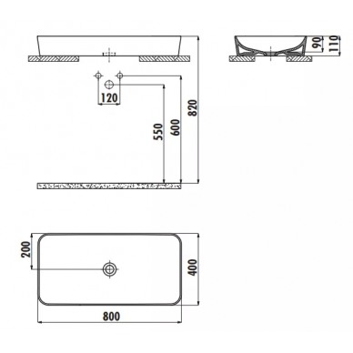 - Монтаж: к стене, к тумбе, к столешнице сверху