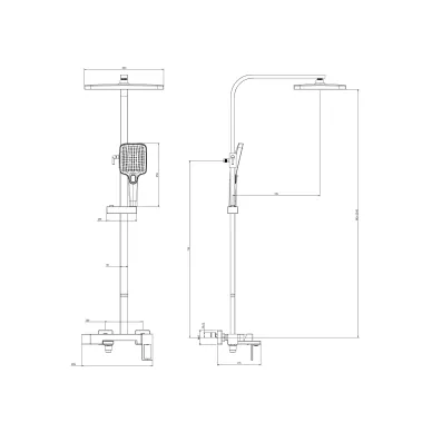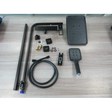 - Комплектация: термостат, кронштейн, шланг, держатель, лейка, верхний душ