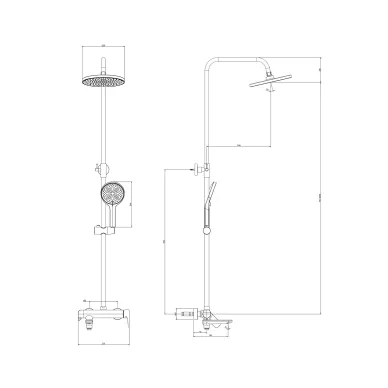 - Комплектация: кронштейн, шланг, держатель, лейка, стойка, верхний душ