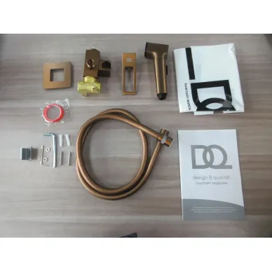 - Комплектация: смеситель, шланг, держатель, лейка, верхний душ, излив