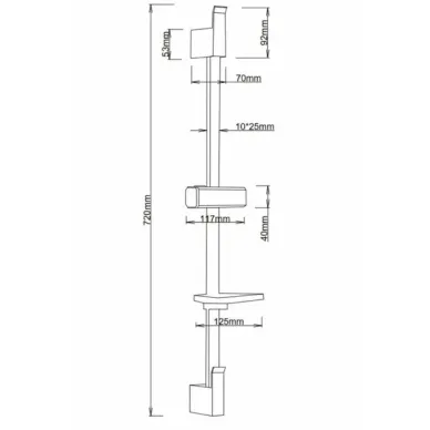 - Комплектация: смеситель, держатель, лейка, стойка, полочка, верхний душ