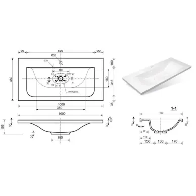 - Отверстия под смеситель: одно отверстие