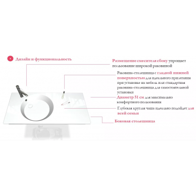 • Монтаж: к стене, к тумбе, к столешнице сверху