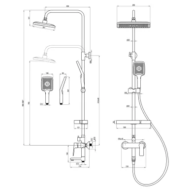• Комплектация: термостат, шланг, держатель, лейка, стойка, полочка