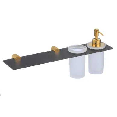Дозатор для жидкого мыла Savol серия 21hb S-002169HB с настенным держателем, стаканом, золото/ черный