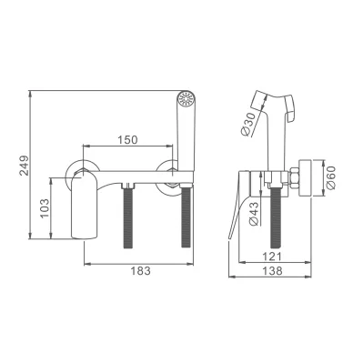 - Комплектация: смеситель, шланг, держатель, лейка, стойка, верхний душ, излив