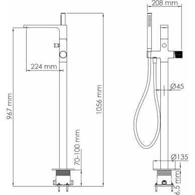 Термостат для ванны Wasserkraft Elbe 7400 (7488 Thermo) скрытого монтажа, с лейкой, черный матовый