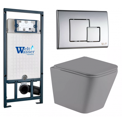 Инсталляция Welt Wasser AMBERG 497 ST + MERZBACH 043 GL-WT + AMBERG RD-MT CR в комплекте с унитазом, безободковый, с сидением микролифт