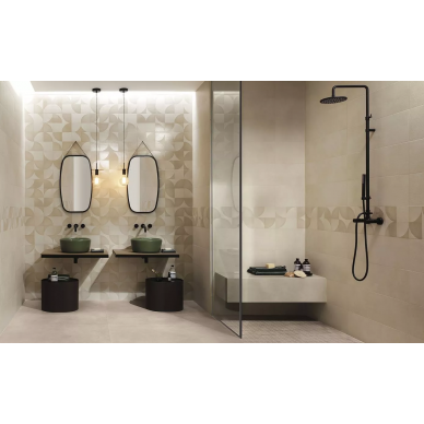 Керамическая плитка Mat&More 2898 сделает вашу ванную комнату уютной и элегантной. Она может производиться в нескольких вариантах с матовой или полированной поверхностью. Красивый рисунок декор, настенная, имитирующий природный материал, удачно вписывается в любой интерьер. Такой декор является основой многих дизайнерских решений в разных стилях: от классики и ар-деко до современных минималистских ванных и интерьеров в стиле фьюжн. Коллекция для кухни, для ванной, для туалета, для гостиной, для прихожей обладает высоким классом абразивности и стойкостью к повреждениям. Ею можно отделывать не только стены в ванной, но и пол. В коллекции есть несколько вариантов узоров, близких по цвету. Это позволит избежать эффекта штампа и повторяемости в интерьере.