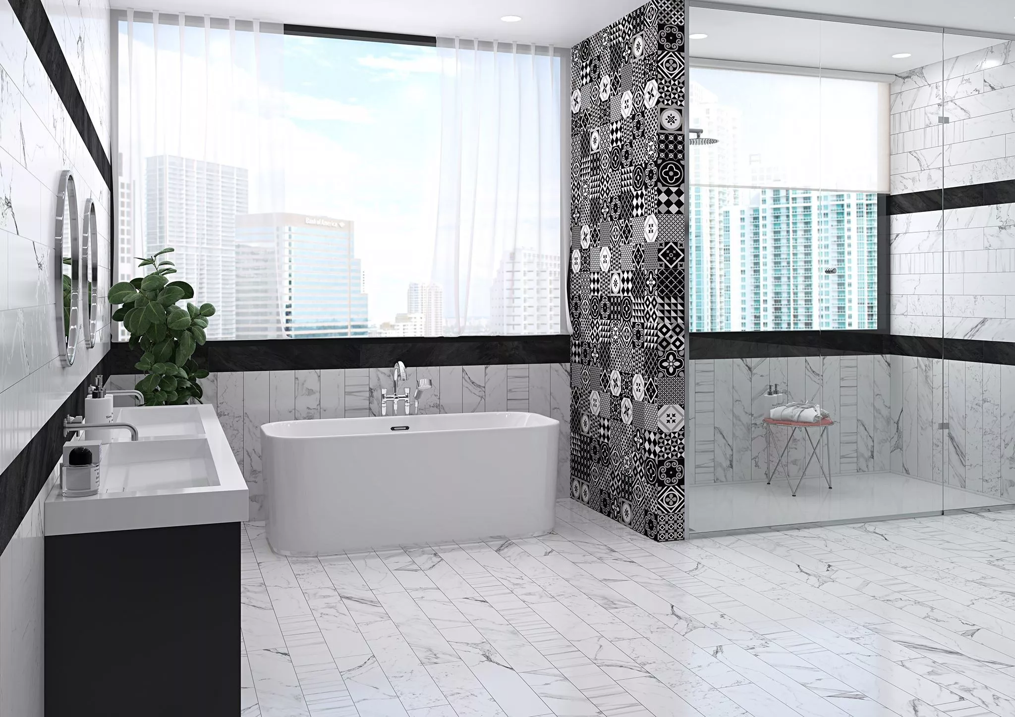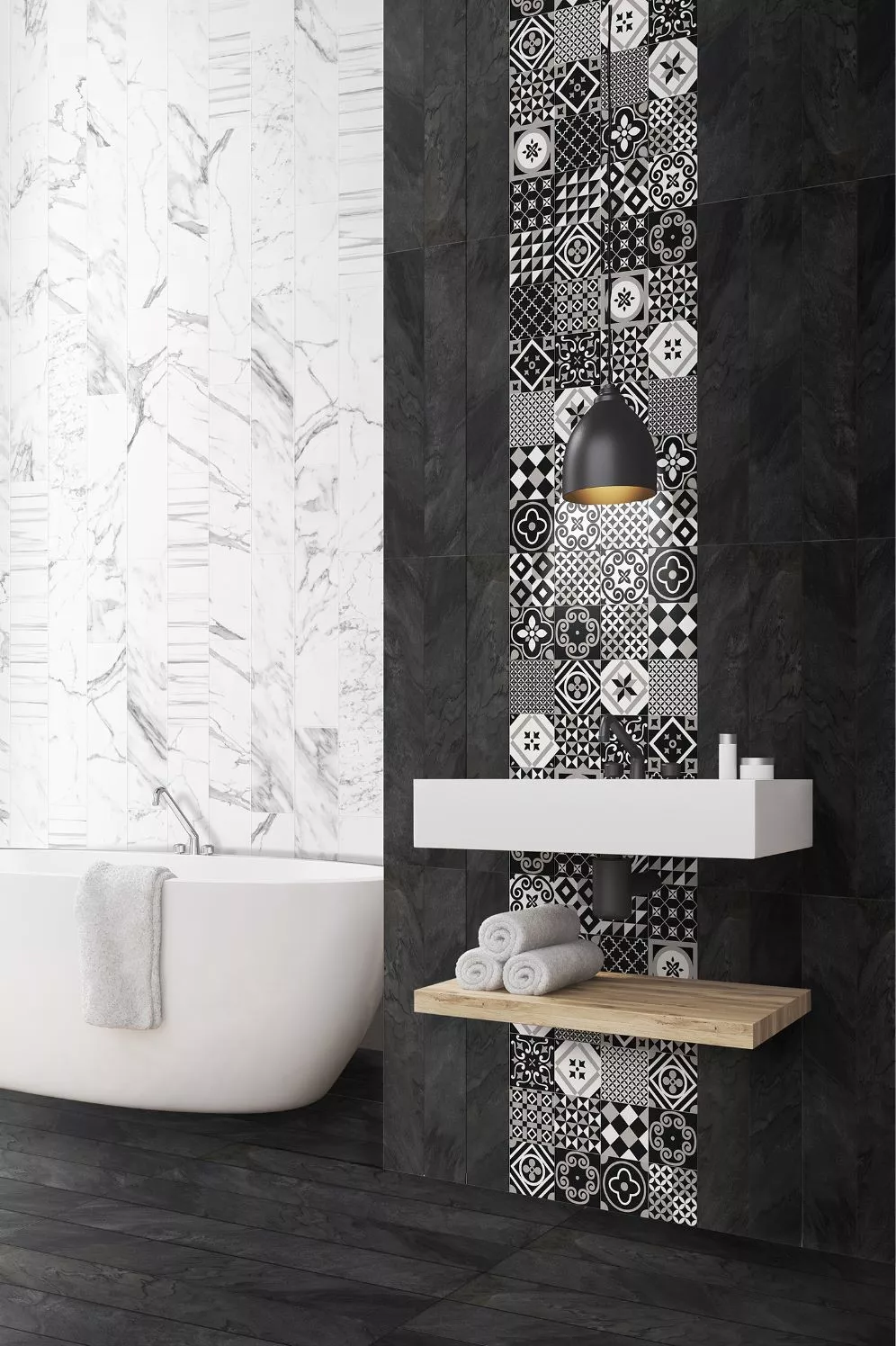 Керамическая плитка с гладкой или текстурной поверхностью прочна и устойчива к повреждениям. Она характеризуется низким водопоглощением и поэтому отлично подходит в качестве отделки для стен или напольного покрытия. Коллекция керамической плитки SAMOA 2643 — это сочетание элегантности и шика с высокой износостойкостью. Она чрезвычайно устойчива к механическим повреждениям, истиранию и температурным перепадам, поэтому подходит для помещений с подогревом пола. Ректифицированные края позволяют использовать тонкие затирки, чтобы рисунок был более выразительным. Вневременной узор напольный, настенная, напольная, удобный для укладки формат и прочность керамики сделают 2643 украшением вашей ванной комнаты.