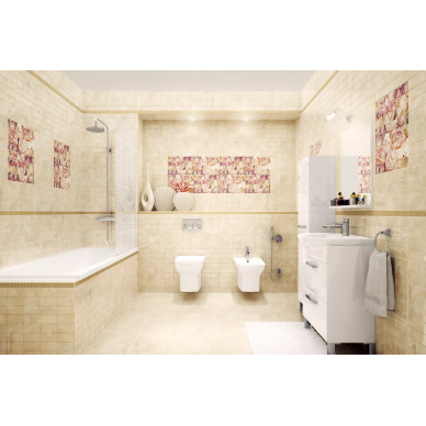 Керамическая плитка изготавливается из молотого кварца и каолина с добавлением различных пигментов. Она характеризуется долговечностью, прочностью и устойчивостью как к истиранию, так и к воздействию химических веществ. Коллекция керамической плитки Spring 3094 — отличается правильной геометрией и эстетичным декором, что делает ее простой в укладке. Она имеет высокий класс абразивности и морозостойкости при низком водопоглощении. Поверхность может быть гладкой или рельефной. Декор напольный хорошо смотрится как в небольшой ванной комнате, так и в просторном помещении. Интересный эффект дает использование плитки разных размеров и узоров в рамках одной серии 3094. Вы сможете творчески сформировать пространство ванной комнаты.