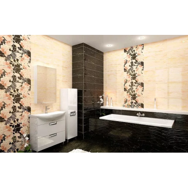 Керамическая плитка изготавливается из молотого кварца и каолина с добавлением различных пигментов. Она характеризуется долговечностью, прочностью и устойчивостью как к истиранию, так и к воздействию химических веществ. Коллекция керамической плитки Tiara 3349 — отличается правильной геометрией и эстетичным декором, что делает ее простой в укладке. Она имеет высокий класс абразивности и морозостойкости при низком водопоглощении. Поверхность может быть гладкой или рельефной. Декор панно, настенная, напольный хорошо смотрится как в небольшой ванной комнате, так и в просторном помещении. Интересный эффект дает использование плитки разных размеров и узоров в рамках одной серии 3349. Вы сможете творчески сформировать пространство ванной комнаты.