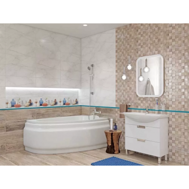 Керамическая плитка изготавливается из молотого кварца и каолина с добавлением различных пигментов. Она характеризуется долговечностью, прочностью и устойчивостью как к истиранию, так и к воздействию химических веществ. Коллекция керамической плитки Vita 3418 — отличается правильной геометрией и эстетичным декором, что делает ее простой в укладке. Она имеет высокий класс абразивности и морозостойкости при низком водопоглощении. Поверхность может быть гладкой или рельефной. Декор настенная, декор, напольный хорошо смотрится как в небольшой ванной комнате, так и в просторном помещении. Интересный эффект дает использование плитки разных размеров и узоров в рамках одной серии 3418. Вы сможете творчески сформировать пространство ванной комнаты.