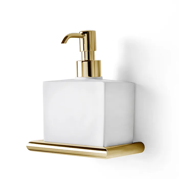 3SC Guy Дозатор для жидкого мыла, подвесной, композит Solid Surface, цвет: белый матовый/золото 24к. Lucido GU01DGD