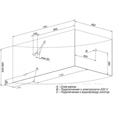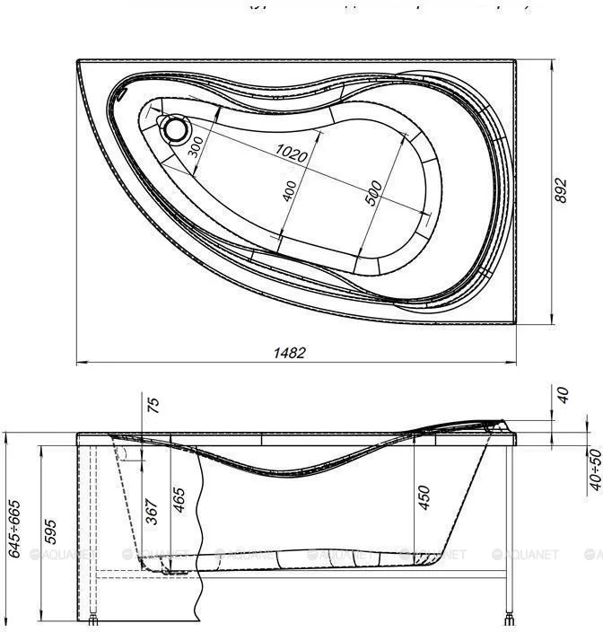 Акриловая ванна Aquanet Maldiva 00205445 150x90 см, правая с каркасом