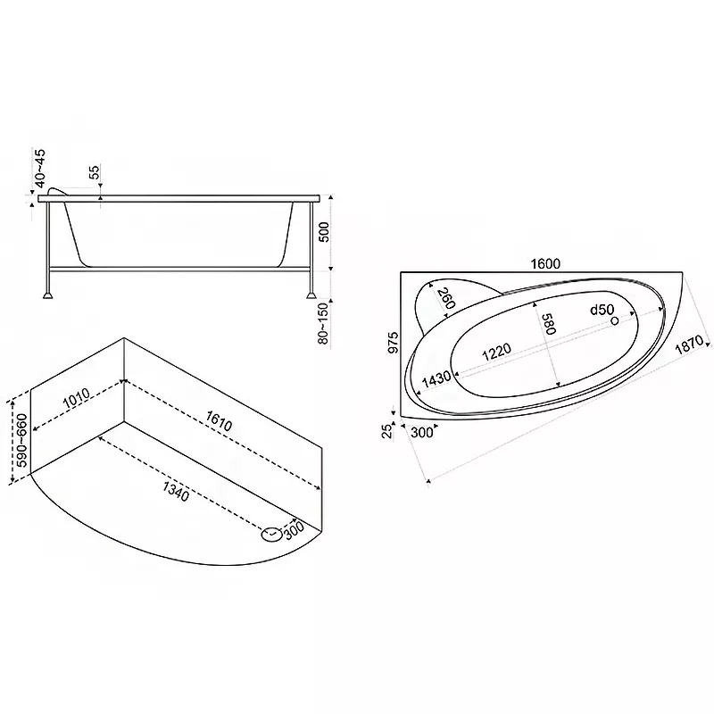 - Ванна изготовлена из акрила с усиленным армирующим слоем по всей внутренней поверхности.