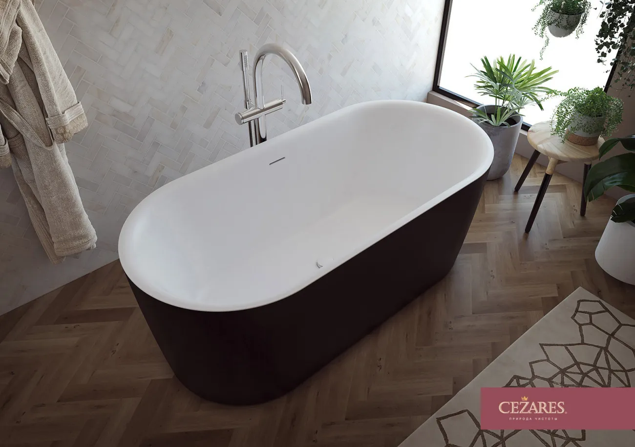 Акриловая ванна Cezares Metauro METAURO-INT-Central-180-80-60-B-W-MATT 180x80 см, черная матовая/белая матовая