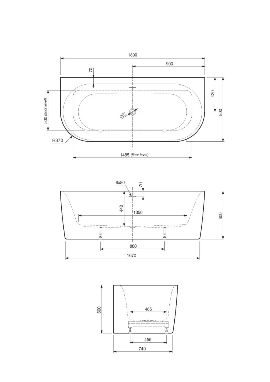 - Диаметр слива: 52 мм.