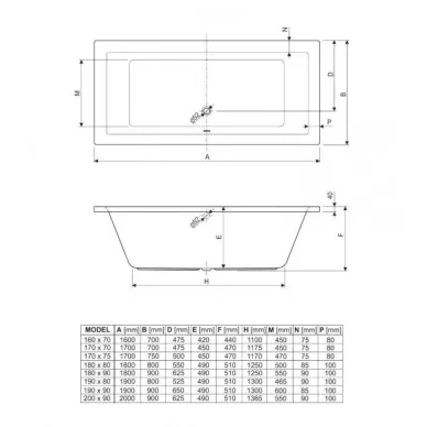 Акриловая ванна Cezares Plane PLANE MINI-170-75-42-W37 170x75
