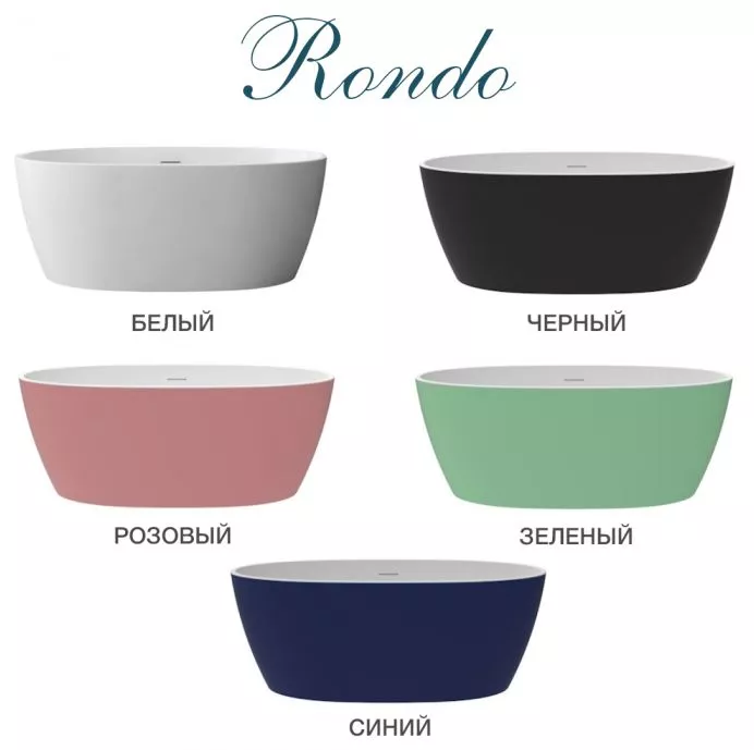 Модель производится в 5-ти цветах с матовым покрытием: белый, черный, синий, светло-розовый и светло-зеленый. Матовое покрытие облегчает уход, благодаря ему внешний вид ванны всегда остается безупречным.