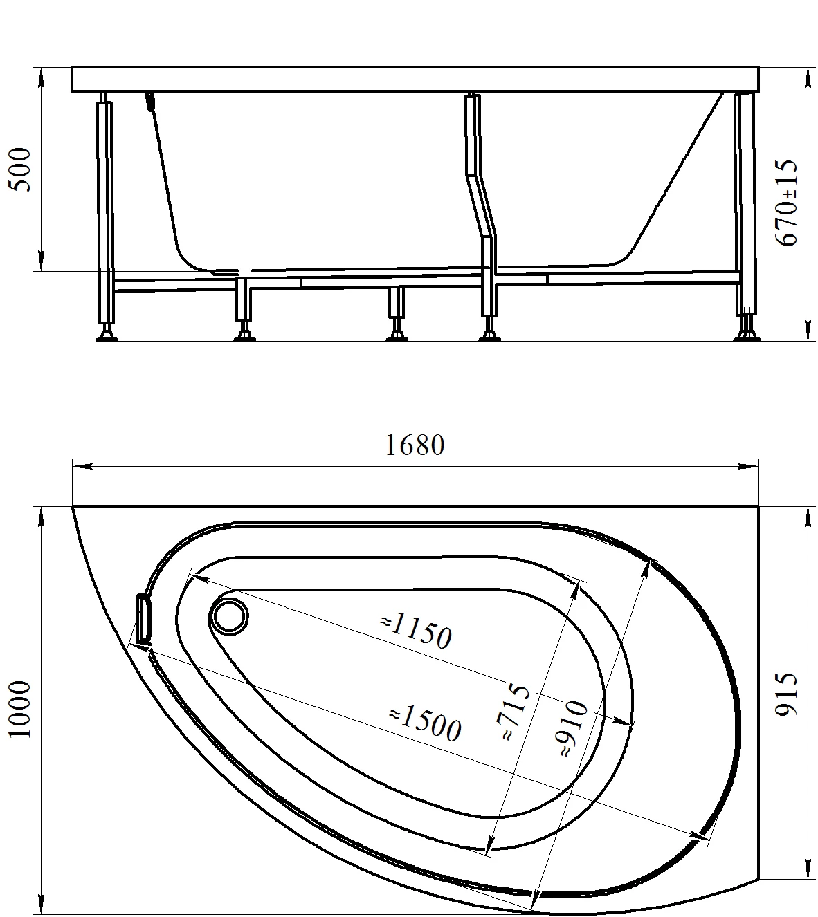 Акриловая ванна Радомир Бергамо 2-01-0-2-1-215 168х100 правостоящая