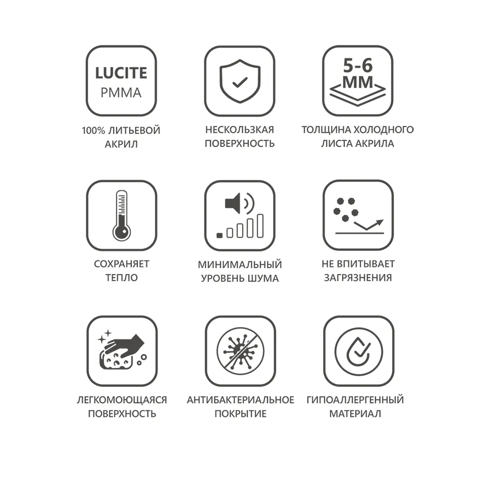 Аксессуары: передняя панель, боковая панель, сточные системы в ассортименте.