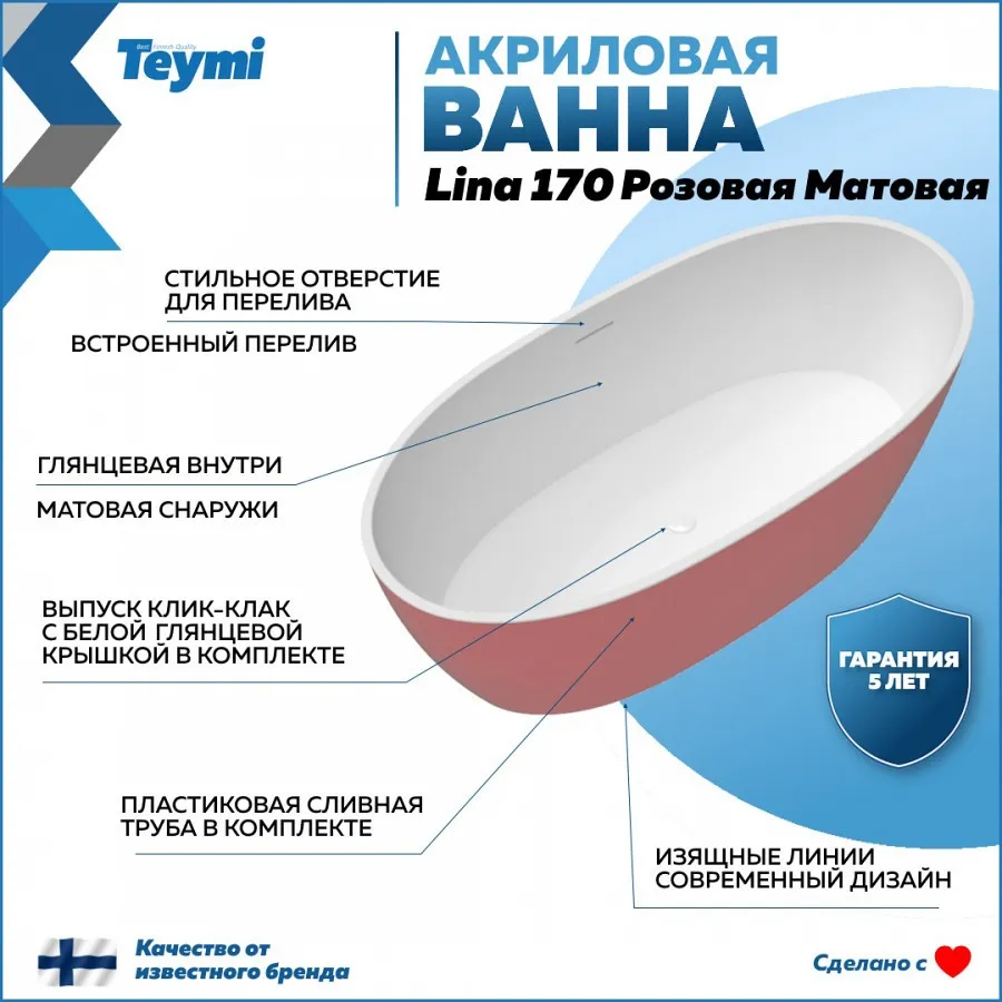 Акриловая ванна Teymi Lina T130103 170x76, отдельностоящая, розовый