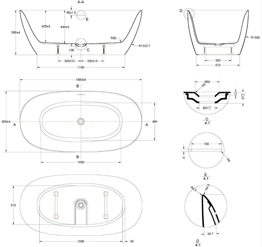 | Расположение перелива: | по центру |