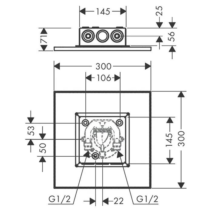 Axor ShowerSolution Верхний душ, 300x300мм, 2jet, потолочный монтаж, цвет: хром 35321000