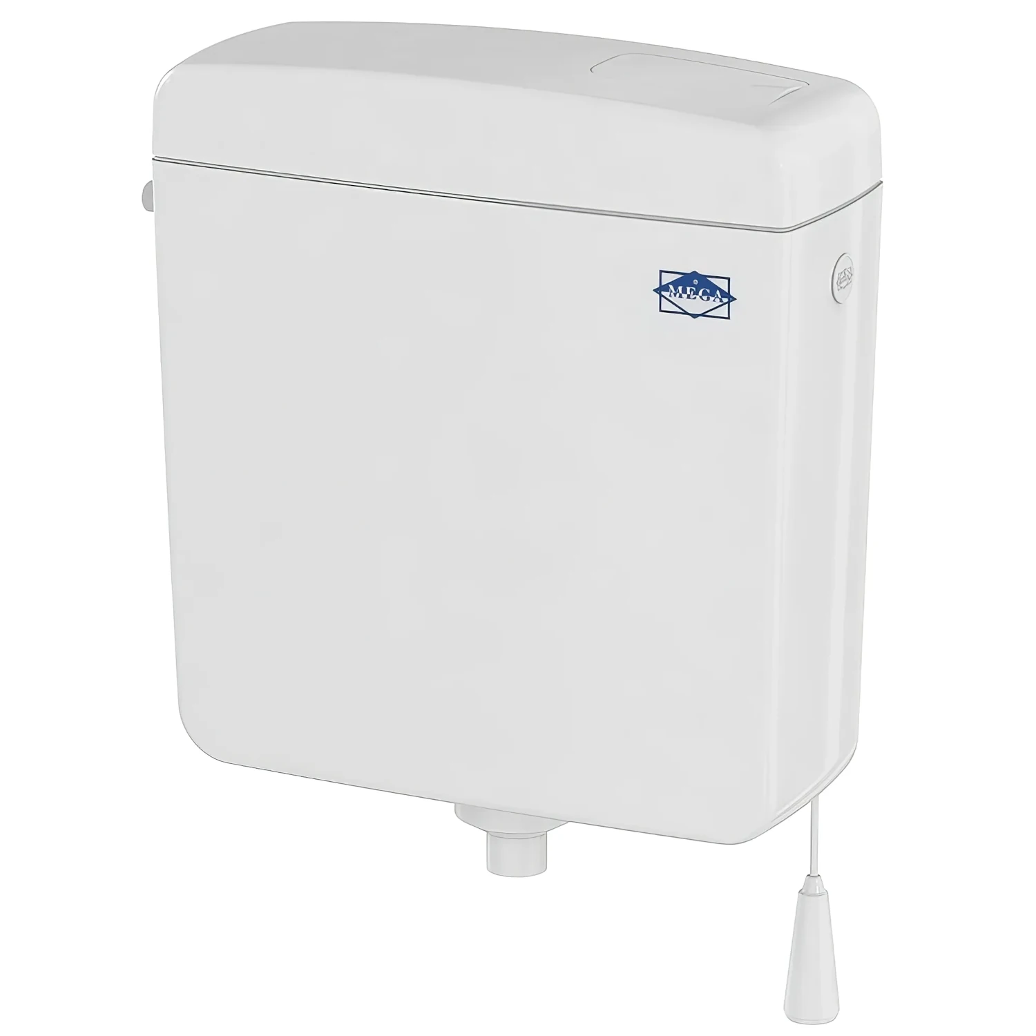 Настенный пластиковый бачок для унитаза в комплекте с трубой для высокой установки. Надёжная арматура обеспечивает тихое и быстрое наполнение бачка с равномерной подачей воды при давлении от 0.1 до 16 бар и способна работать в неблагоприятных условиях (в грязных и известковых водах). Максимальный объём воды 9 л с возможностью регулировки, корпус бачка из полистерена. Быстрая и простая сборка бачка.
