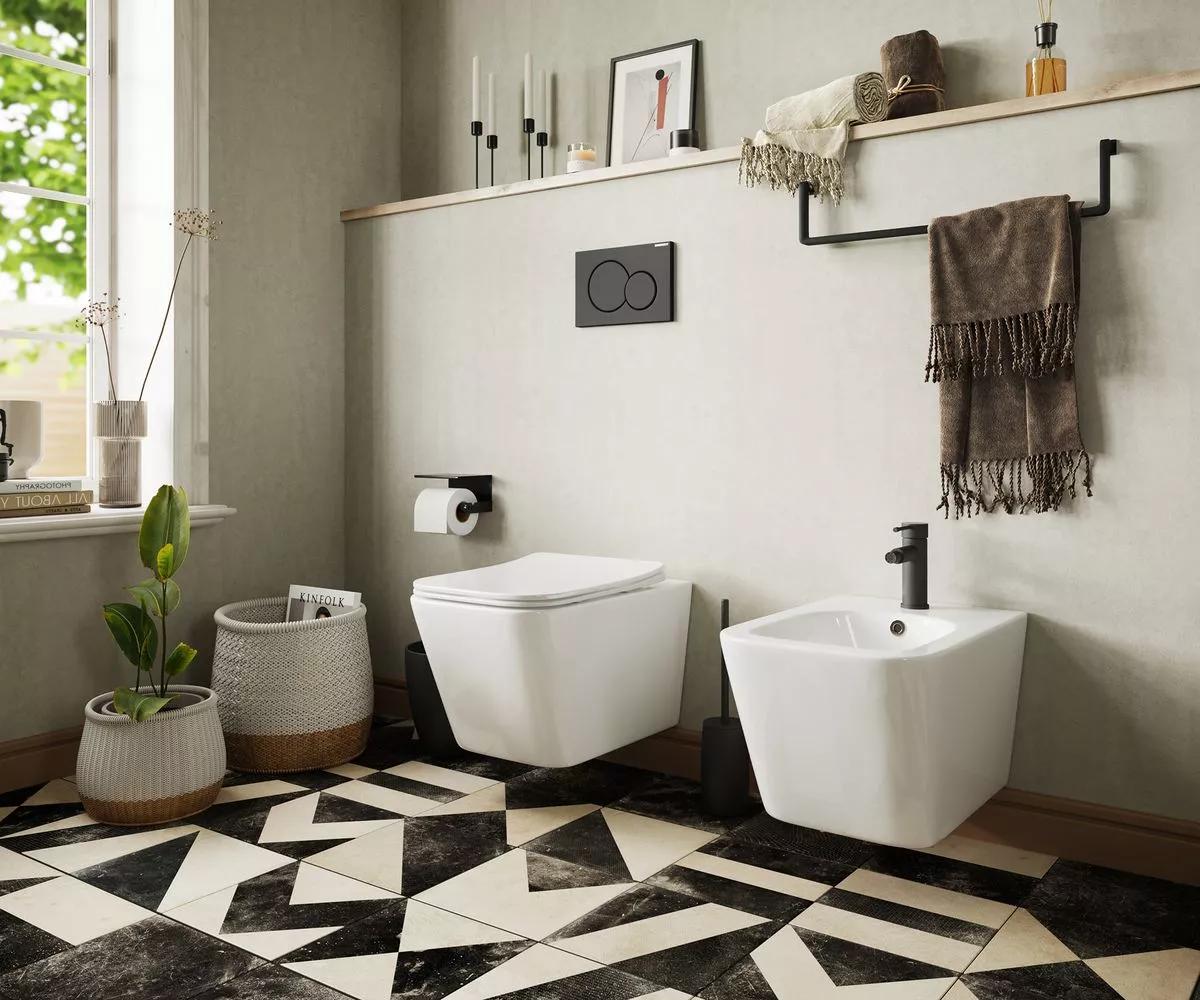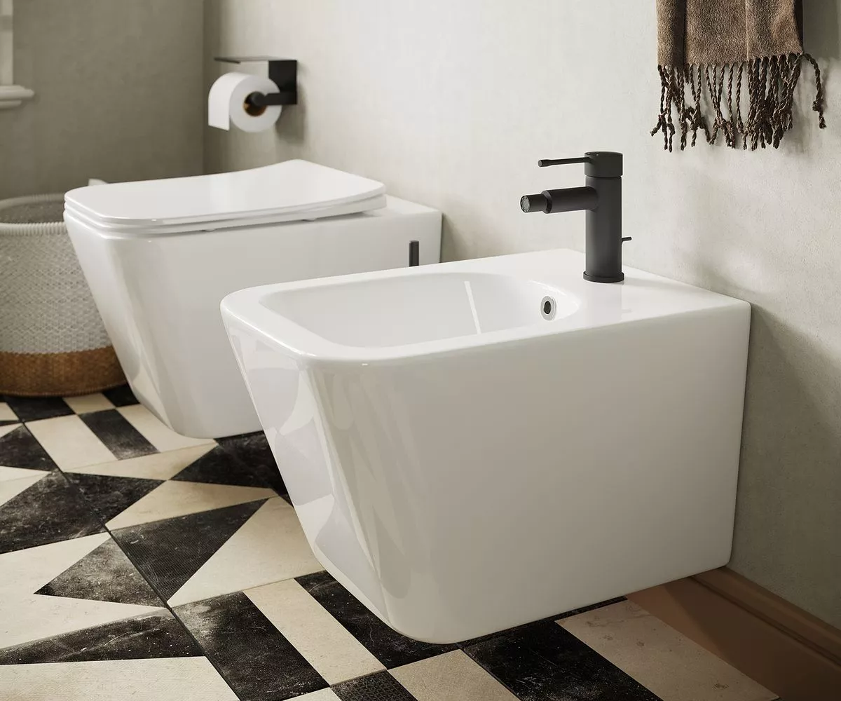 Подвесное биде METRIC, одно отверстие под смеситель, с крепежом для полностью скрытого монтажа.