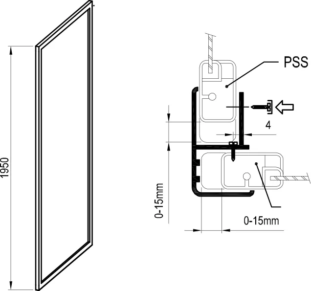 Изделие состоит из одной неподвижной части и не предназначено для самостоятельного использования. В комплектацию изделия входит угловой соединительный профиль для крепления к душевым дверям или душевому уголку. Для крепления к стене используется установочный профиль, который входит в комплектацию душевых дверей или уголка. С помощью регулирующего профиля NPS можно компенсировать недостающие размеры или выровнять неровности строительного проема. Неподвижная стенка PSS комбинируется с душевыми дверьми высотой 1850 мм (SDZ2, SDZ3, SDOP) для создания «L»- образного душевого уголка. При комбинации двух неподвижных стенок типа PSS и душевых дверей SDZ2, SDZ3, SDOP, а также одной неподвижной стенки PSS и душевых уголков SKCP4, SKPP6, SRV2-S+SRV2-S образуется «П»-образный душевой уголок. Возможно изготовление нестандартных размеров душевых дверей и неподвижной стенки. Душевые кабины и двери серии supernova поставляются в готовом виде и могут быть собраны одним человеком всего за один час.