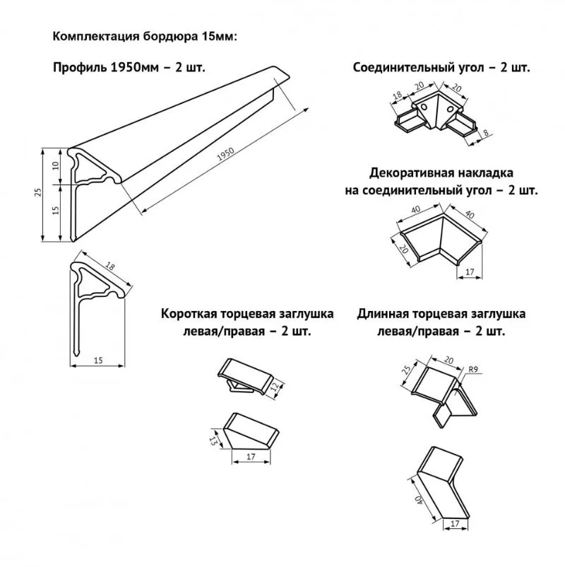 - Короткая торцевая заглушка левая/правая – 2 шт.